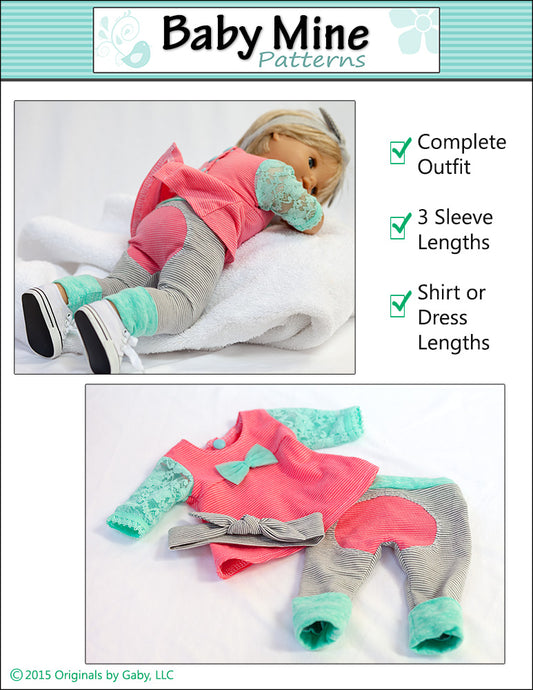Tri-City Knit Dress & Circle Leggings 15" Baby Doll Clothes Pattern