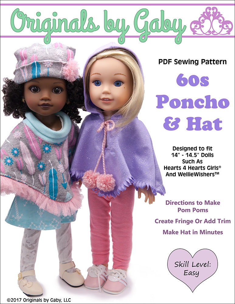 60s Poncho & Hat 14-14.5" Doll Clothes Pattern